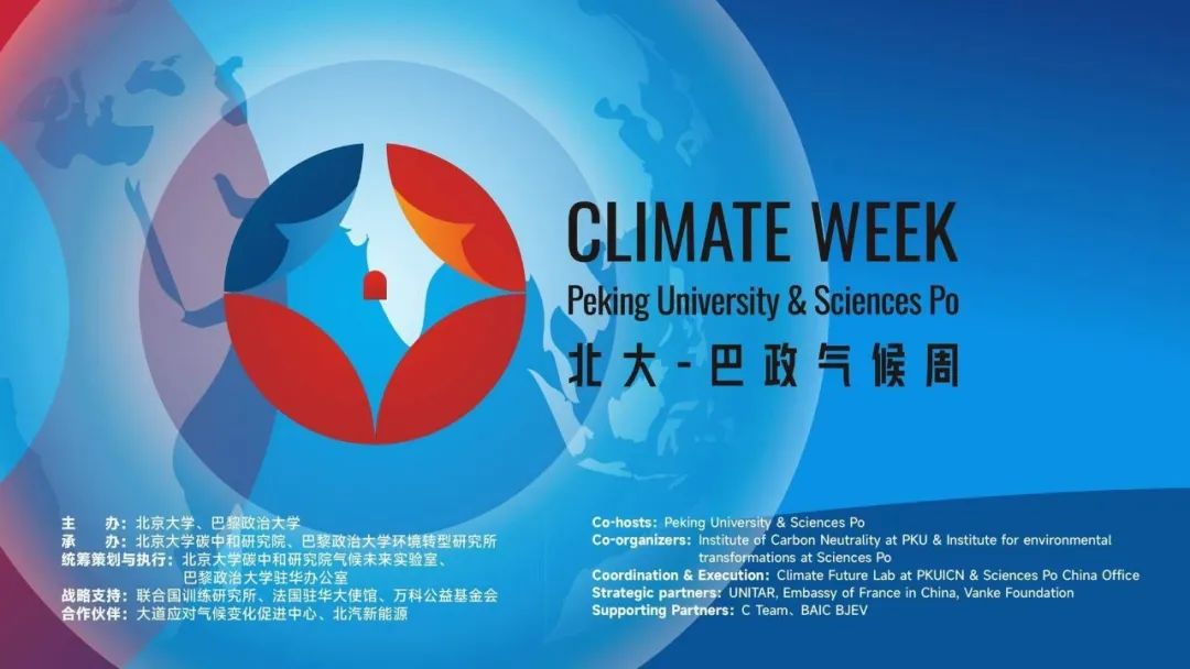 On the occasion of the 60th anniversary of the establishment of diplomatic relations between France and China,Peking University (PKU) and Sciences Po cohosted the "PKU-SciencesPo Climate Week" from October 21 to 25.This event, held prior to the United Nations Climate Change Conference in Baku (COP29)aims to strengthen climate cooperation between China and France and open new channels for collective efforts in exploring solutions and practical actions to address climate challenges. "PKU-Sciences Po climate Week" is also part of the official program of the Environment Month of Embassy of France in China. The week-long event featured discussions on global climate governance, climate finance, sustainable consumption, and behavioral transformation. The purpose of this activity is to give full play to the role of universities in China and France, deepen consensus, enhance cooperation, contribute innovative mechanisms to promote global climate governance, and explore innovative paths for carbon-neutral talent training.